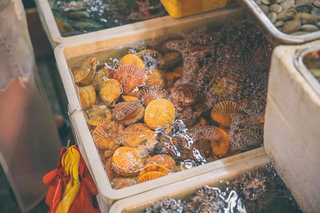 海鲜市场品种丰富,海产新鲜,质量也很高,所有海鲜都活蹦乱跳的,和乐蟹那黄满得都快溢出来了,琵琶虾竟然还有这么高颜值的种类,海胆、龙虾、基围虾、各种鱼类贝类应有尽有,还有一个特产,就是蛏子王。