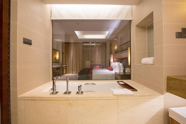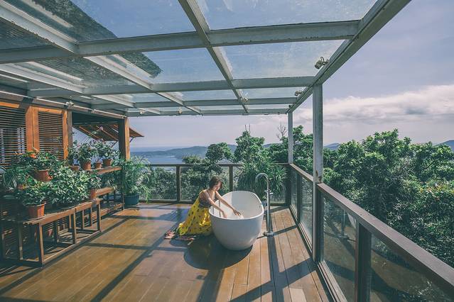 几年前知道这个森林公园,就是来源于非诚勿扰二,当时看到舒淇葛优的试婚房、无边的泳池、如空中漫步的索桥、窗外即是海天的美景颇为震撼,此行我最期待的一站就是这里。昨晚我们在去哪网买了这个森林公园的票,选了160元/人的套餐,包括全程景点游览、过江龙索桥的体验、非诚勿扰二拍摄房间的参观、云顶咖啡的畅饮。如果住在这个度假村的话游览是免费的,而且我看到有个区域是只有住店客人才能进。