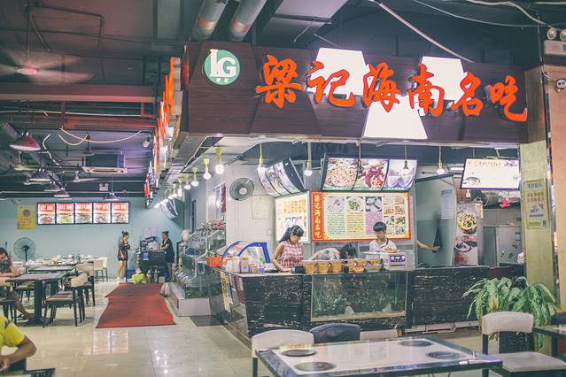 放下行李,出去觅食,刚才来酒店的路上看见百花谷在亚龙湾路的斜对面有个亚泰美食街(如上面发的那张地图上有),就去那吧。负一层有一个美食广场,聚集着多户品牌的那种,正对大门的是一家叫梁记的,看到有抱罗粉椰子饭,情不自禁又来了一份,门口有卖椰子,绿的8块、黄的15,我觉得味道都差不多。隔壁有个天天乐超市,应该是亚龙湾最大的超市了,这里的物价比市区高很多,如果你方便的话,可以从市区买些吃的喝的带过来。