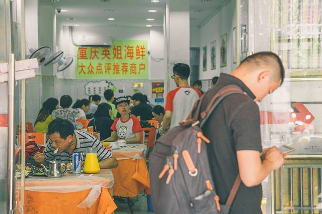 夜晚的第一市场是个繁华的夜市,人头攒动,从里面走出来,真是费了一番汗液。回到酒店做足了功课,网上有一家评论很不错的店叫重庆英姐海鲜加工店,我们准备明天中午去一探究竟!