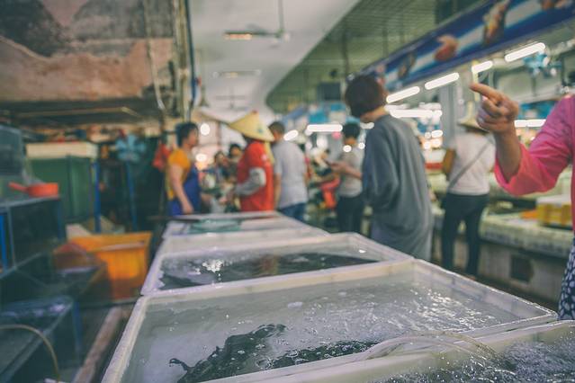 海鲜加工,当然是要自己去买海鲜,第一市场海鲜市场在新建街155号,从酒店步行3分钟就到了。沿路不停被拉客,但我们心有所属。