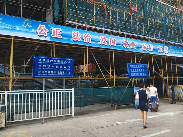 下午6点,正点到达三亚凤凰机场,飞机落地,椰林树影、大朵白云、无暇蓝天、似火骄阳、微腥海风等等全都高清晰度地映入眼帘。机场到达大厅出口外面在施工,所以需要先从这里坐一个免费的摆渡车到临时的停车场,这个临时停车场走路去是不行的,因为很远,坐车都需要至少五分钟吧,租车公司会在临时停车场等我,接我去提车(车程大概2分钟)。