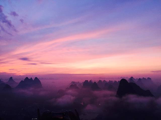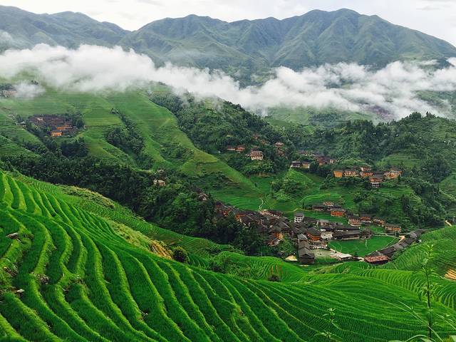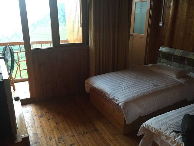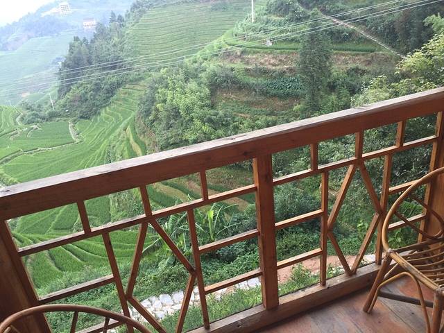 早上5点出发看日出,为看日出,也是拼了。没有老板的带路,我相信我根本找不到入口。跟我同住的两个大学生小伙子、老板蒙姐、我四人一行开始爬。刚开始真心有点跟不上两个小伙,我都开始服老了,我看他俩在那歇上了,我超了他俩之后,直到我到了山顶开始晾衣服,喝了一整瓶矿泉水,十多分钟了,蒙姐先上来了,他俩又过了五分钟才爬上来,我突然觉得自己体力还行。很遗憾没有看到日出,不过半山腰的风景,以及俯瞰阳朔的风景我觉得已经够美了。看完日出,回到客栈买5斤百香果开始补觉。准备下午出发去龙脊。说实话有点挺舍不得阳朔的。下午一点坐车去的龙脊,大家都推荐去龙脊不住青旅住民宿,我就选了一家,七星楼。我订的标间,老板帮我升级了观景房,可以看到梯田。晚上吃饭,因为我一个人,只点了竹筒饭,山野菜。竹筒鸡我肯定吃不完,就没有点,不过大家都说挺不错的。