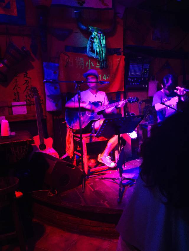起床之后,收拾收拾,吃一碗螺蛳粉,去汽车站坐到阳朔的大巴,迷迷糊糊的坐到阳朔,找到凤尾竹青年旅社,把脱下来换洗的衣服一洗,洗个澡。跟客栈的两个饭友出去拼饭了,目标大师傅啤酒鱼,味道真心不错,价格公道,吃完鱼了。大西街,走一走。各式各样的酒吧,各式各样的店铺。其实跟回民街差不多,最后找到老板推荐的一家清吧,小马的天。价格不贵,没有最低消费。最主要几个驻场唱歌真心不错,除了那个小伙性格有点张扬。