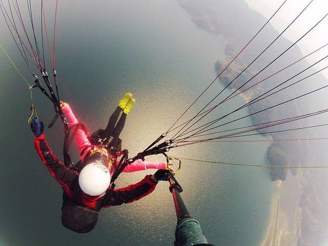 只是我的身体不争气,上去前5分钟还挺好,接下来就不行了,有一种晕眩的感觉,还特别想吐。这个时候教练就让我仰头,这个动作确实让我缓解了不少。我飞了半个小时左右,拍了一段5分多钟的视频。拍了很多照片儿。可是符合我要求的并不多。这个吧,一是和我状态有关系,二是和技术有关系。哈哈哈。不过总体我还是比较满意的,体验了,而且还有留影,还有视频。