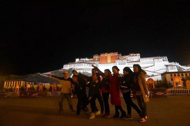 饭后我们一起去拉萨的标志性建筑“布达拉宫”。拍下了我们启程前的第一张合影。