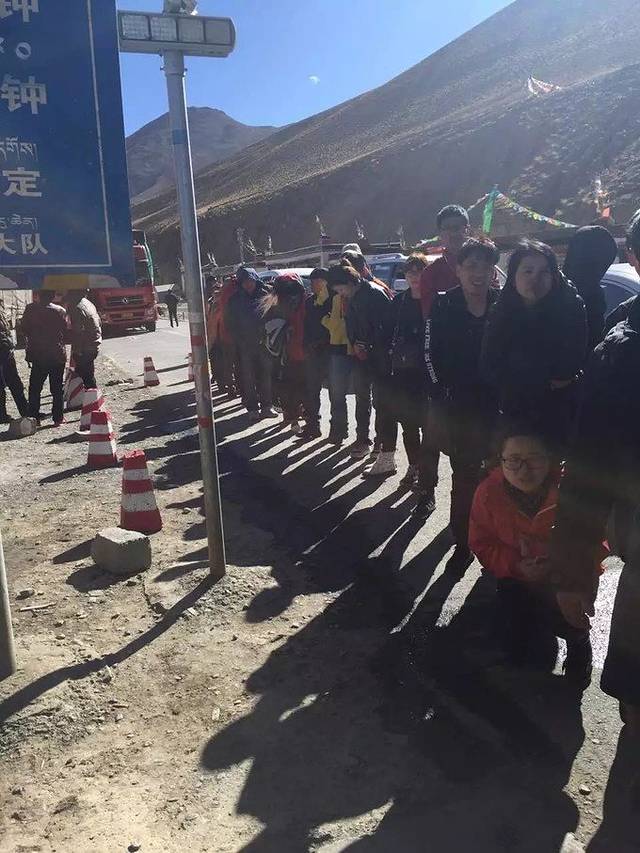 16号凌晨,我们在行驶在前往吉隆口岸的路上。大概是凌晨3点钟左右吧。我们被关卡的警察拦住了。吉隆方向的路上下雪了,夜晚行车不安全,所以封路,这时造成很多辆车都在卡在那儿等放行。一等就等到了中午11点多。我们也是醉了。在车上呆了一晚上。特别的痛苦。陆路去尼泊尔就是有很多的不确定因素,主要就是自然因素。放行的时候我们要拿护照和身份证去登记。好吧!这一路我们都在上车下车,登记。有几个关卡还需要检查行李!那叫一个痛苦。拿出来,放进去。然后兵哥哥的手在我的包里游走。也真的是!醉了!