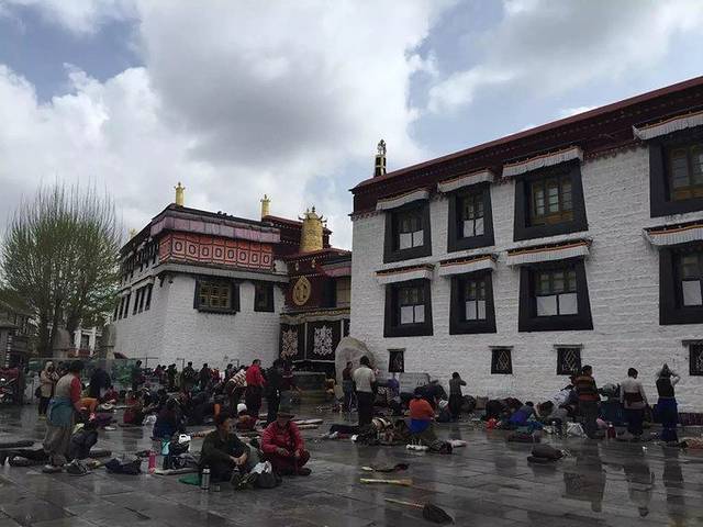大昭寺的广场上,每天都有人在跪拜。