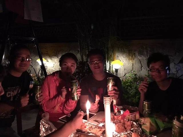 到达博卡拉的下午我们去费瓦湖划船,晚上我们去买了炸鸡喝啤酒,在我们住的小花园里面喝了起来。