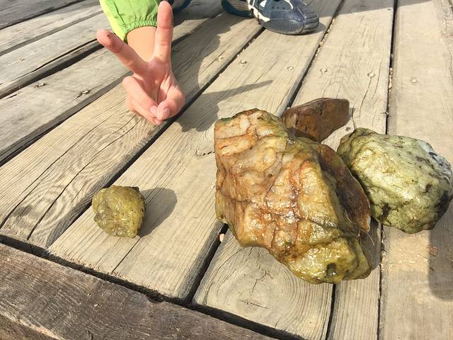 额尔古纳河,边境河,据说出玛瑙,见到几块大石头,孩子开心