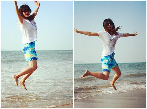 大家去海边不妨穿一些艳丽点的衣服,比如黄色,红色,花色,拍出来绝对很好看哦