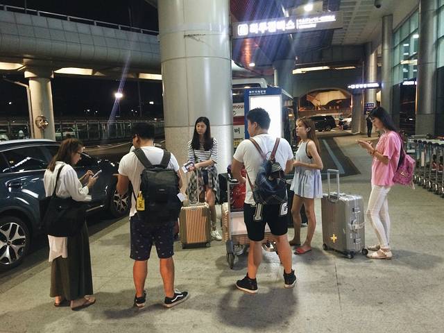 韩国萧山机场,我们一行八人,集合一同前往济州岛,因为时差是一个小时,所以飞行的时间是一个半小时,很快就降落在济州,打开WIFI就可以畅通无阻了。
