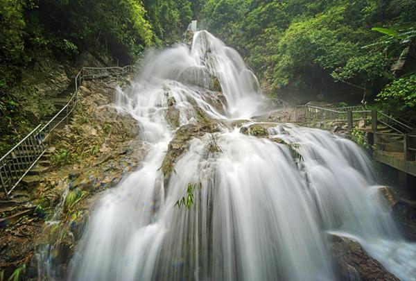 清远天子山瀑布为一组天然梯级瀑布群,位于广东清远市清城区高田镇西坑山区。