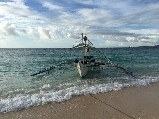 走到沙滩尽头,会看到海边会有这样的螃蟹船。其实这些是接驳回S1码头的船,跟船家讨价还价后,250P,载着我们两个人晃悠悠回S1,沿途把纳米,西湾那些著名的酒店都看了一遍,还观赏了海上的夕阳,很赞。