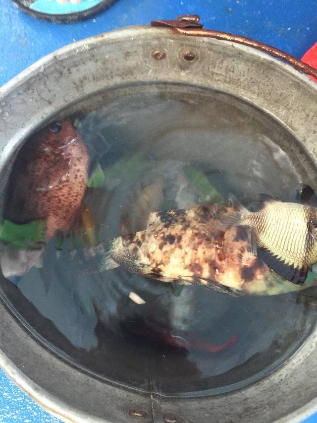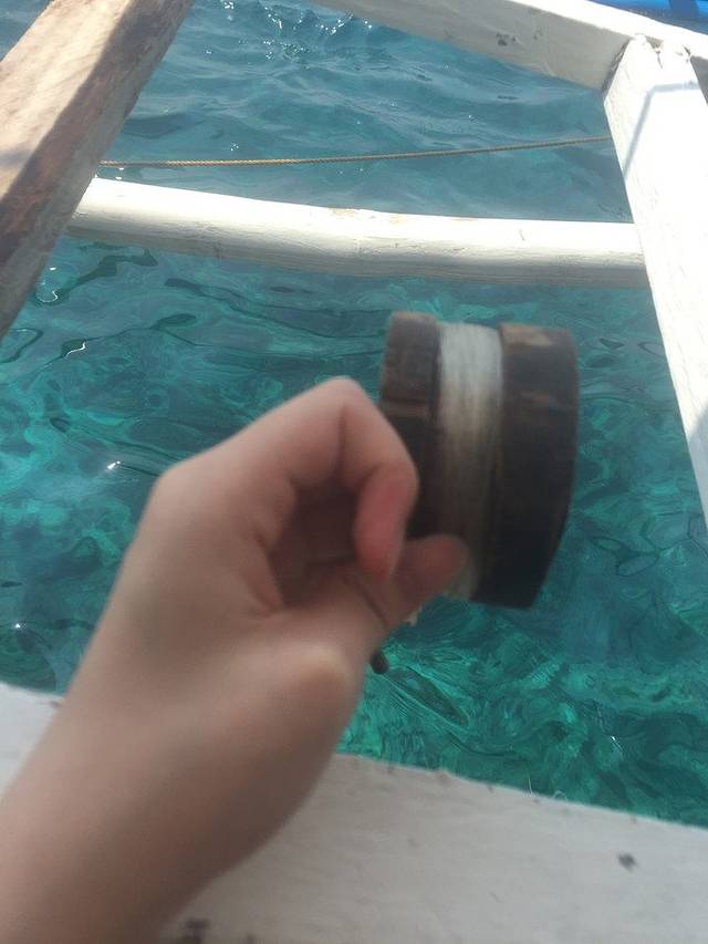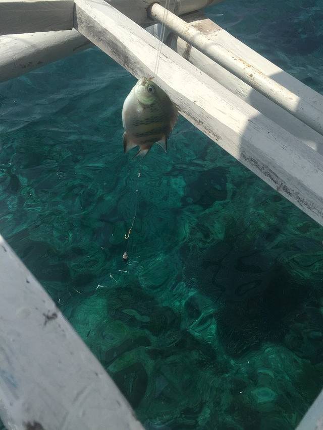 到达海中央开始海钓。其实就是一个很简单的圈子。钓到的鱼都很特别。海中央的水真的是特别绿特别美。钓不到鱼的话就静静的对着腿拍照吧。