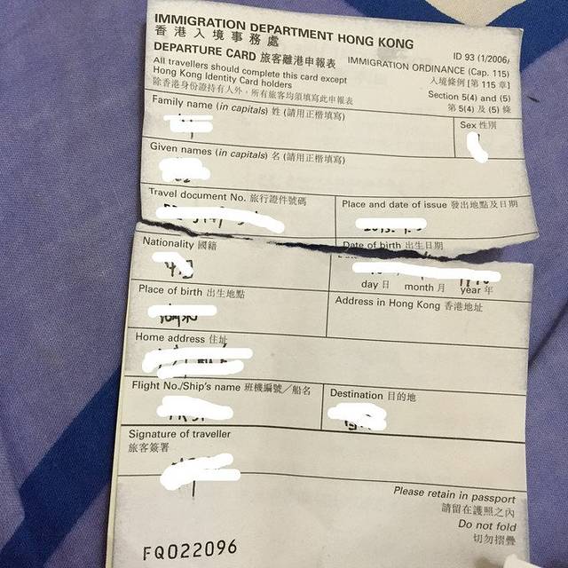2)拿护照和机票过关的,要填写一张离港申报表才能过关,一式三联的(如果没有填,会让你补填再过关,最好自己带笔),机场出境时就要交回底单,不能丢。