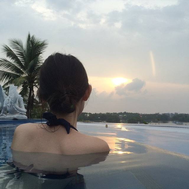 酒店的无边泳池很美,私人沙滩的水很清,可以看到很多海星。可惜雨季会打下一些落叶等等,水里面有些漂浮物,但还是不影响水清风景美。