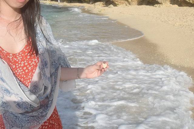 拣了一颗心形的石头,并且顺利把它带回国了。