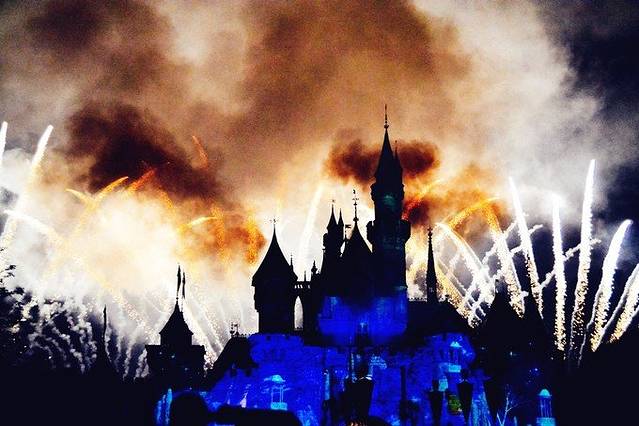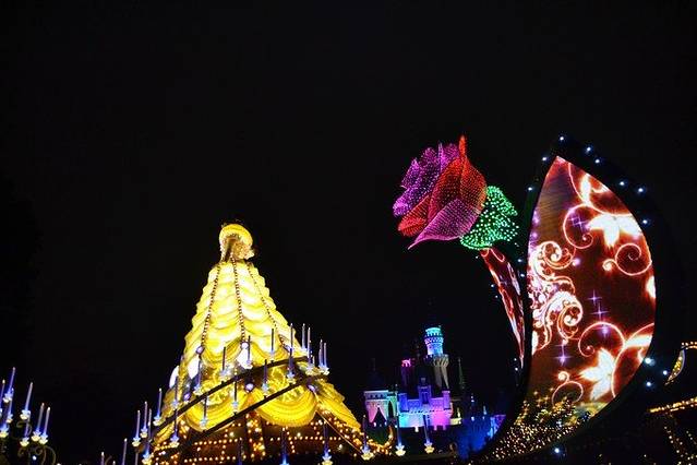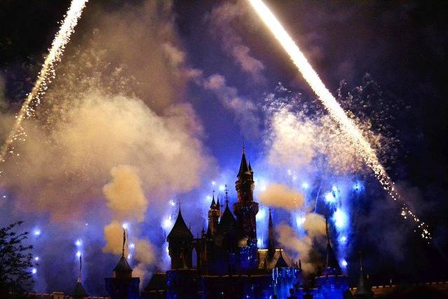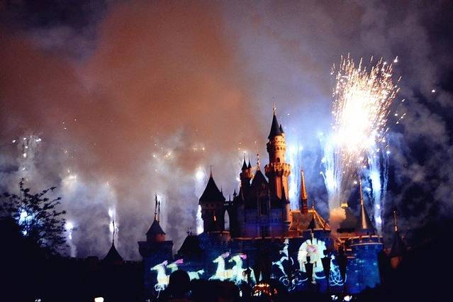 烟火表演不仅仅是放烟火奥,还会在睡公主城堡上投影各种配合烟火的故事,很好看!!