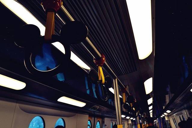 通往迪斯尼的地铁,窗子、车里装修和车站风格都是浓浓的迪斯尼气息奥
