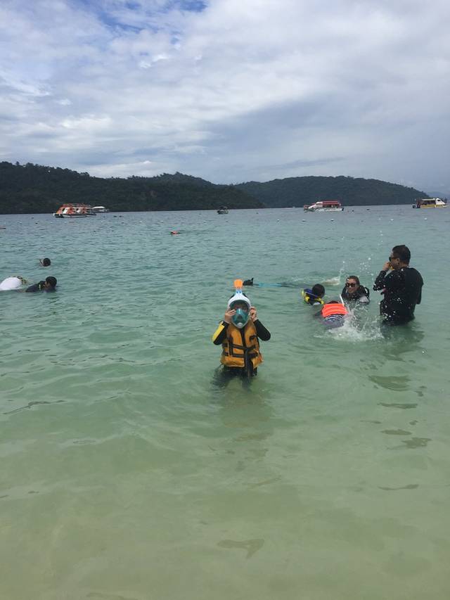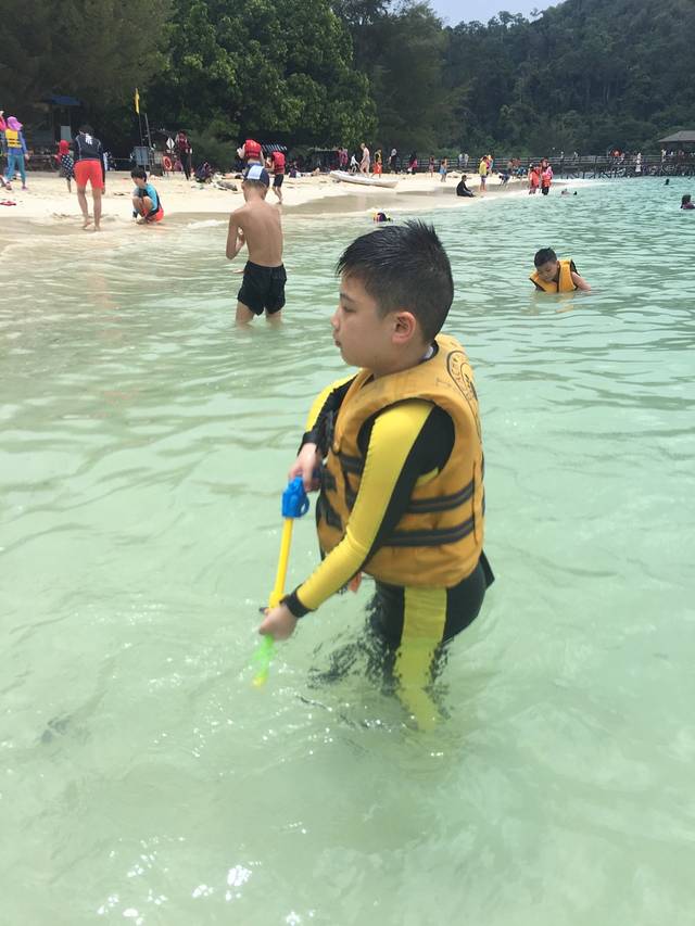 在加雅中心酒店附近有个码头,可以自己买票坐船去各个小岛,有了去年的经验,我们自己去了沙比岛。码头里面有很多旅行社摊点,大多数会中文,买的船票包括船票 保险 救生衣,浮潜设备可以上岛再租也可以自带,上岛后要另外交登岛费相当于公园门票,各个摊点的价格基本上一样,所以不需要比较什么价格,买船票的时候会和你约好回来的时间,去一个岛还是两个岛,买好票后面的事情都会有人带领不用自己管了。买船票的时候也可以买岛上的自助午餐,没什么意思,沙比岛上有个小店可以做一些简单的炒饭什么的,价格也划算很多。上岛必带的物品有游泳衣最好是连体的浮潜衣 防晒产品 喝的水 可以自己吃也可以喂鱼的饼干 防水手机套 水下相机 。浮潜工具岛上可以直接租,不放心卫生可以自带消毒酒精棉擦一下。沙比岛是靠亚庇最近的小岛,人比较多,可以玩各种游乐项目,主要是可以给后面的美人鱼岛浮潜热个身,晚上去了旧街场吃晚餐,旧街场的东西也非常合口味