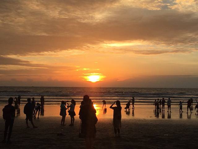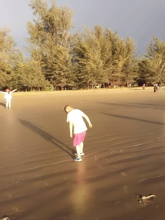 等待天黑看萤火虫时,旅行社又组织我们去附近的黑沙滩看日落