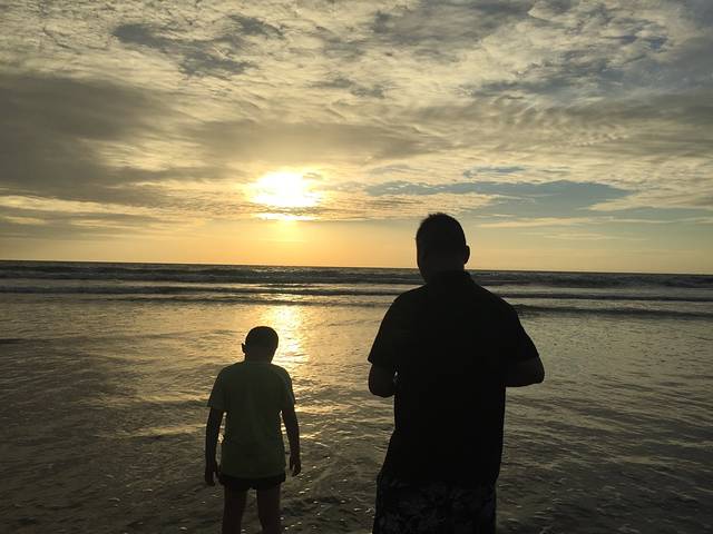 夕阳下的父子