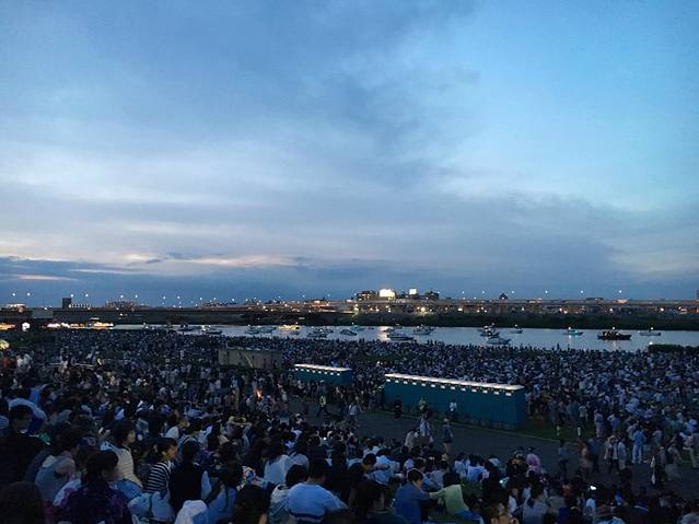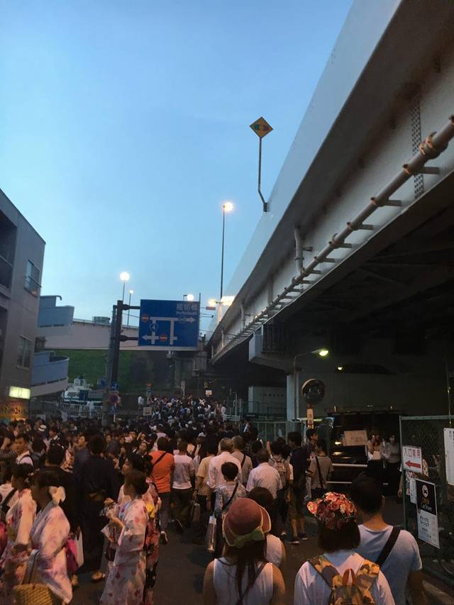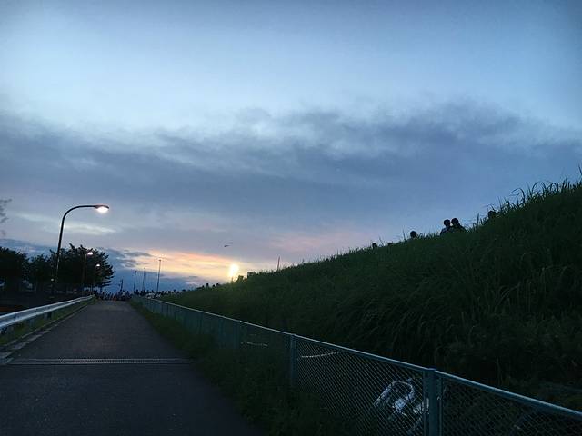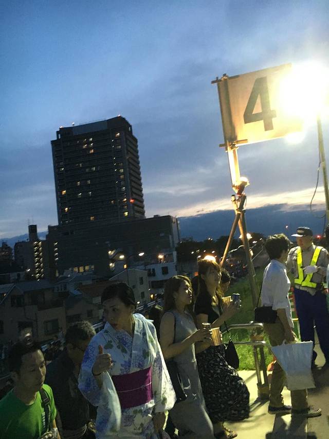 荒川敷有很多入口,同行的小伙伴很早就去占了1入口的座位,结果。。。结果。1是离放烟花的地方最远的入口。。失策!