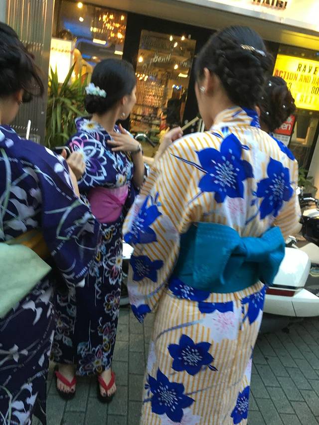 出发前,第一次穿浴衣上街还有点小害羞,但是到了车站发现一车穿浴衣的就淡定了,因为这是第一场花火大会,再后来不用看花火大会的情报,只要看街上有许多人穿浴衣,你就知道这附近不是有花火大会就是有祭祀la ~