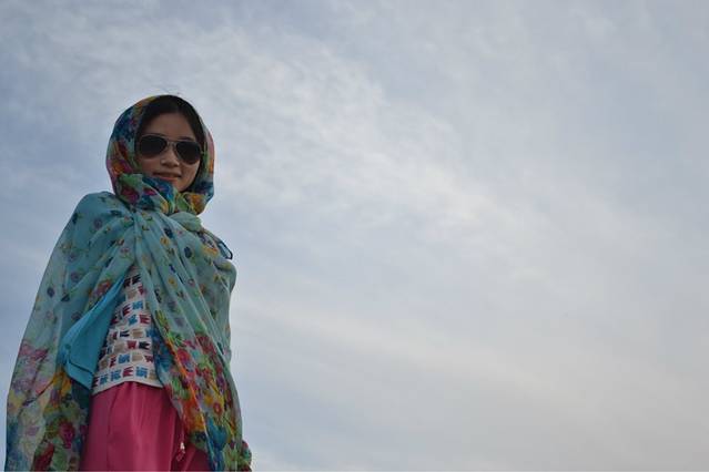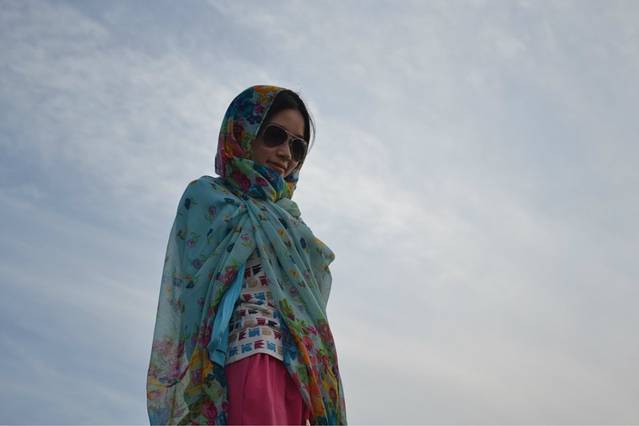 这张照片我脸全盖住了,很想说这种薄纱巾根本不抵用啊,根本不档紫外线,大家还是备魔术头巾更有用!