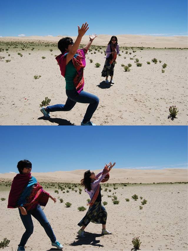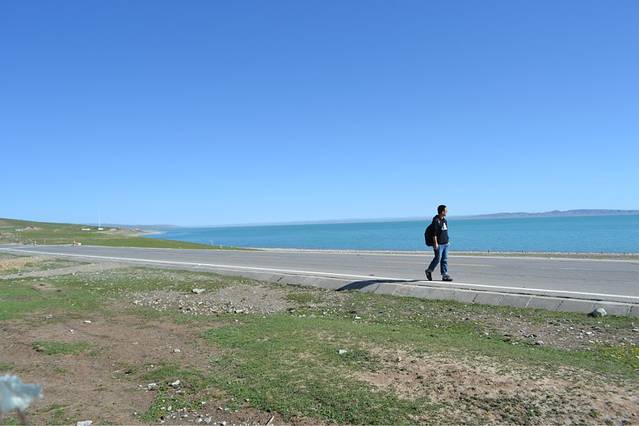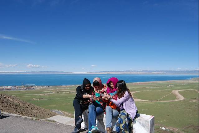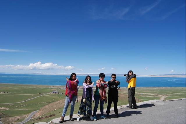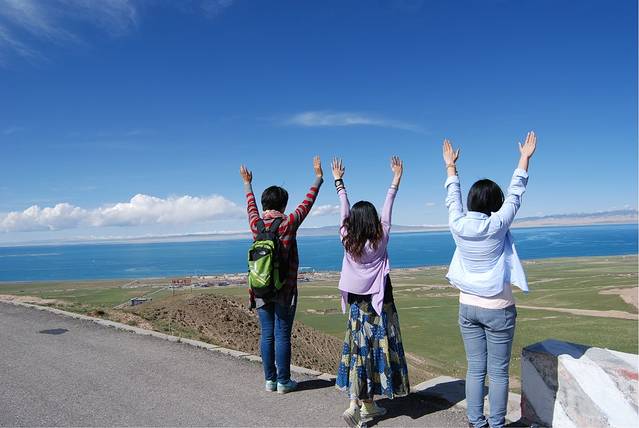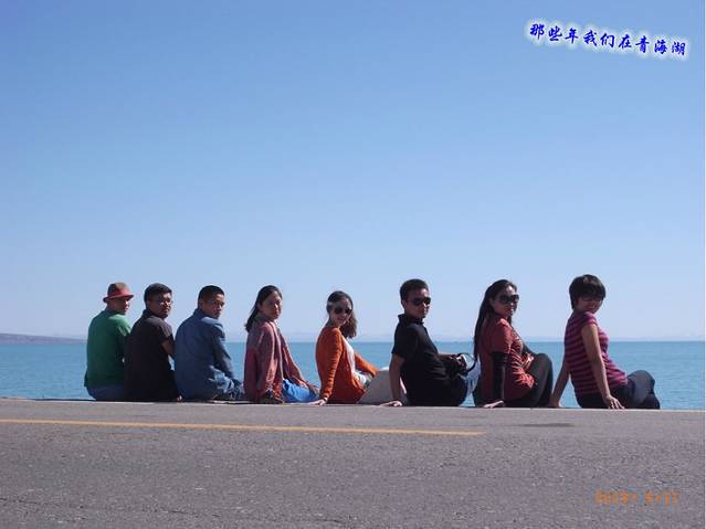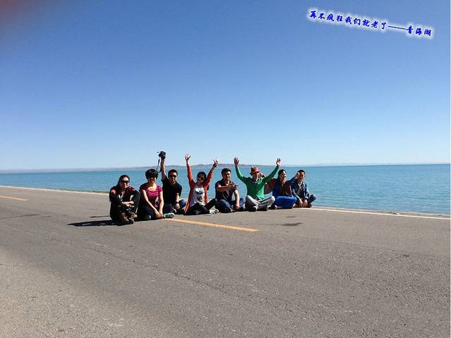 另外一车人也是找师傅包车的,由他叔叔开车带着玩,我们行程都一样,很多地方都一起拍照玩的,超级喜欢这张青海湖边公路上一起欢呼,让我很怀念我的学生生活,怀念我曾经逝去的岁月啊