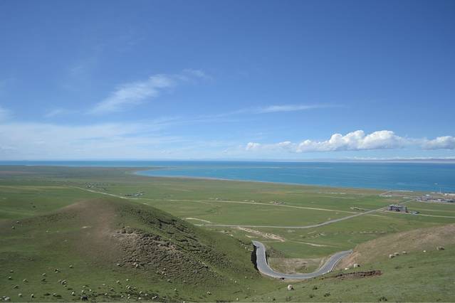 鸟岛出来后我们在门口的一家面馆吃面点了几个菜,今天和昨天的菜我们都点了水煮肉片和酸辣土豆丝,前者是我必点菜,一旅游看到辣的东西就有食欲,这两天我们选择的饭店的味道倒是都还不错哦。后面的路程我们就开始慢慢远离青海湖了,只到它变为一条细线消失在视线中。接下来的一路上全都是windows桌面了,全部蓝天白云群山牛羊,不同的windows版本,因为一路都是美景,我们不停用眼睛享受着连拍照的时间都没有了。
