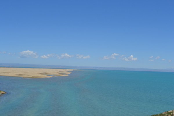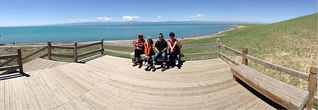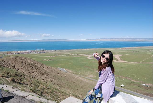 从沙岛出来我们直接到二郎剑风景区(151基地),因为离西宁市区151公里而取名,这个地方还要单独收费,后面有很多亲近去青海湖的机会,而且后面在鸟岛看青海湖比151美很多哦。我们就在门口拍照留恋了就直接到青海湖南山看全景,熊师傅把我们载到南山最好的观景点,青海湖就这样不可预知的一下展现在我们眼前了,我们激动得一阵乱拍。今天的天空云彩很少,天是蓝的,湖也是蓝的,完全一色了。