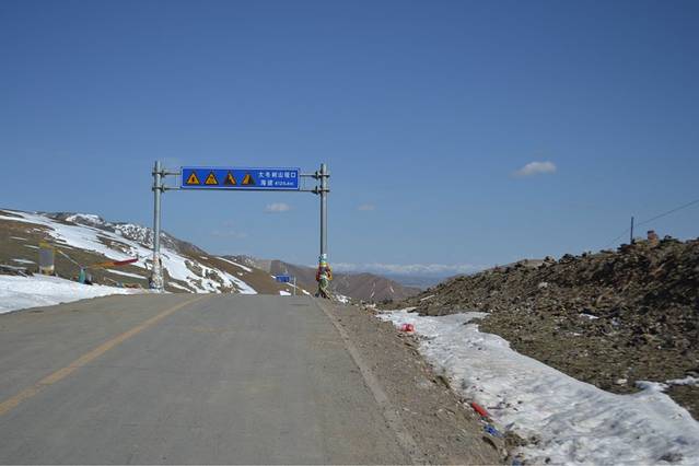 青海湖边最高的两个点一个是第一天的拉鸡山3820m,另一个就是今天要经过的4120.6m的大冬树山垭口。熊师傅让我们下车都要多穿衣服,但我们这两天真的是人品暴涨,到大冬树山垭口竟然没有刮风 ,虽然地上还有很多雪,但我们穿着不多的衣服也感觉不到太冷的。