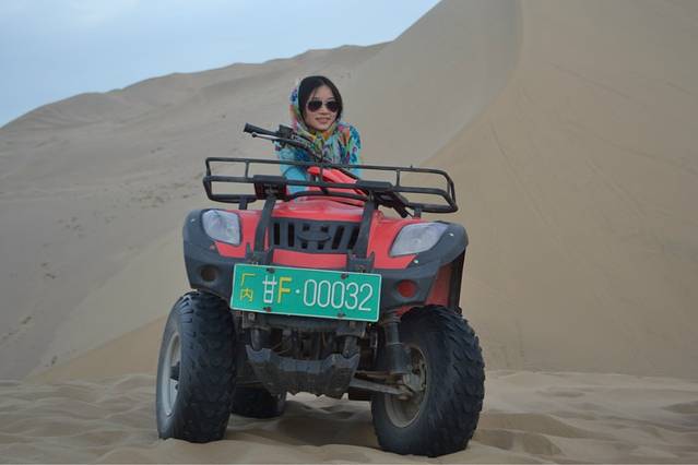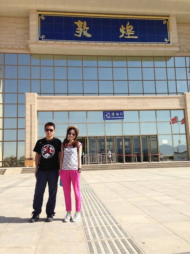 早上9点火车准时到了我梦中的敦煌,敦煌火车站很漂亮,好像是每一个来的人都有这样的同感吧。敦煌行程我们并没有提前联系司机,因为主要就是第二天的西线 需要全天包车,第一天莫高窟原本想的坐公交打车都能去,也就不着急。事先在网上也看了在敦煌包车很容易的,出火车站都是,我们敦煌订的旅店老板也一直在给 我们推荐司机,但我们还是想自己联系。在张掖 时师傅建议我们下火车直接先去莫高窟,玩了再回旅店,因为莫高窟离火车站近些,所以我们下火车就直接找了 一个师傅直奔莫高窟。谈好价格第二天西线和第一天莫高窟包车费用450元,因为怕晚上在鸣沙山玩太晚打不了车,也跟师傅谈好晚上还来鸣沙山接我们。