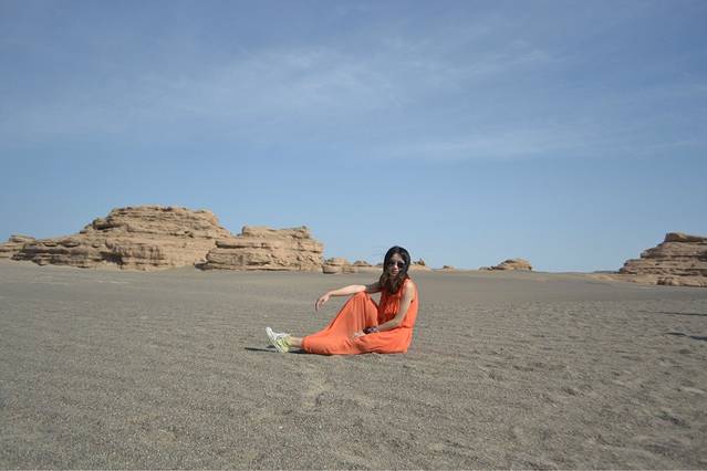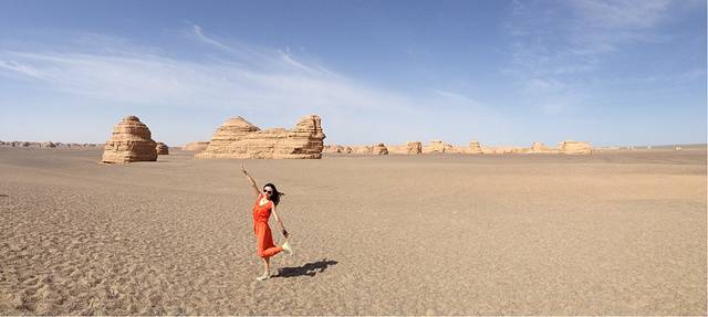 又是大漠孤沙一个人的背影,在这个苍茫的天地下,我的身影怎么拍都感觉非常渺小啊