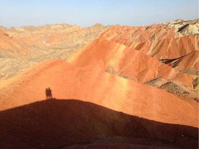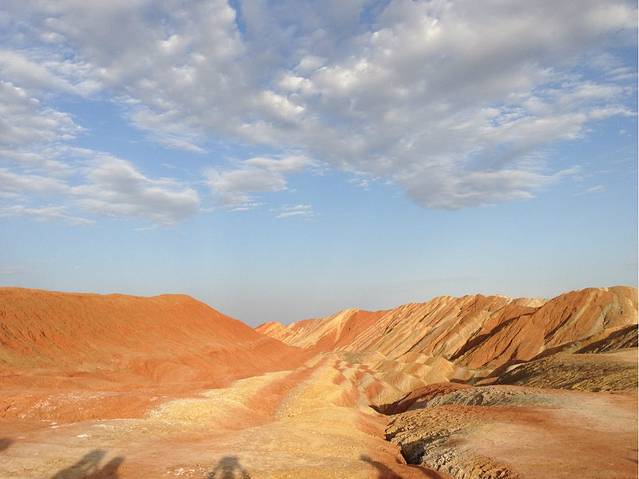 其实会想到去张掖,就是在网上被丹霞七彩绚丽的颜色所吸引,又因为张艺谋的《三枪》是在这个地方取景拍摄,让它名声大震。到张掖丹霞地貌时已经下午5点了,因为那边日落都是8、9点钟,所以我们先在门口饭店吃饭。师傅说他每次最喜欢的就是张掖,因为吃饭非常便宜,我们选的一家饭馆5个人最后才吃了60多,比青海湖便宜太多倍了。吃完饭已经6点过了,我们驱车直接去了七彩丹霞的东门,听师傅说以前从东门或者西门进入丹霞都只能看2、3个观景点,因为两个门属于不同区县管理,各自收费的,今年开始东西连在一起观赏收费了。