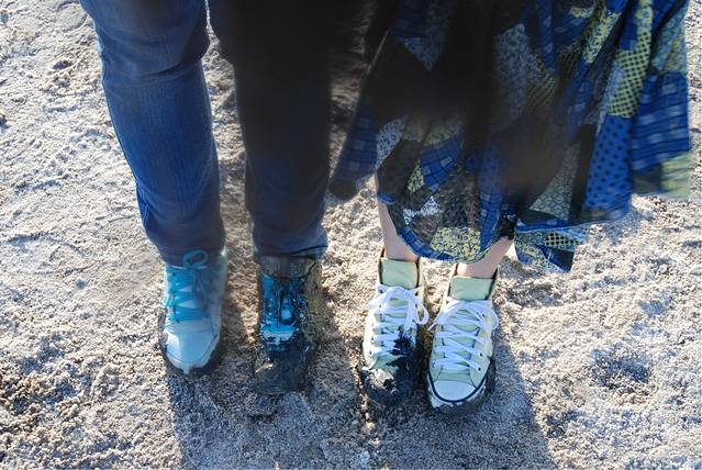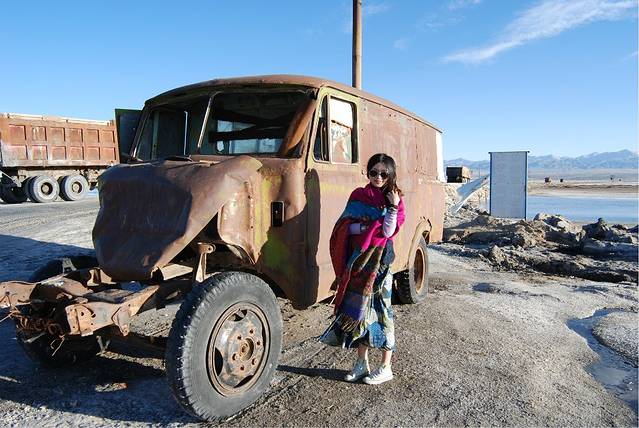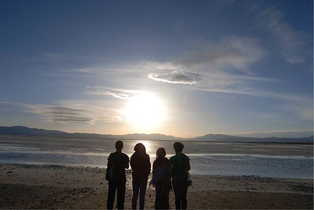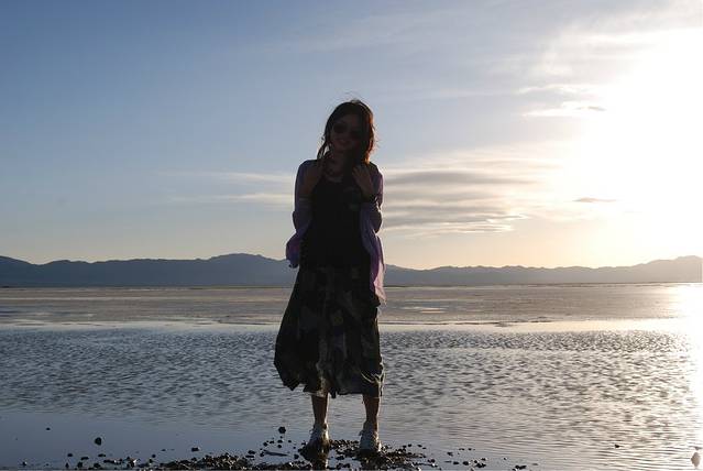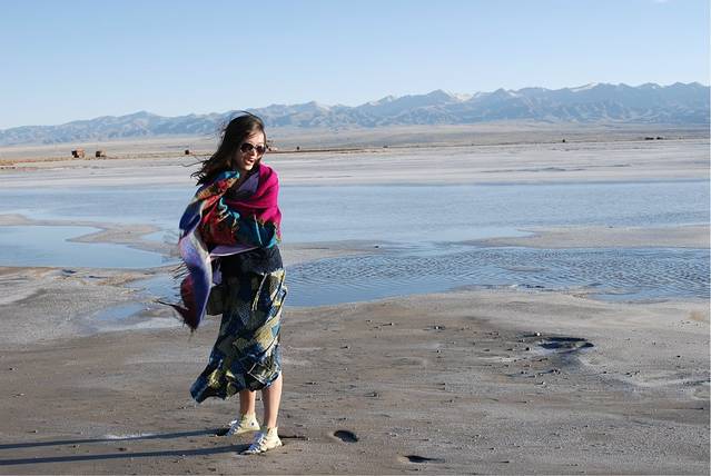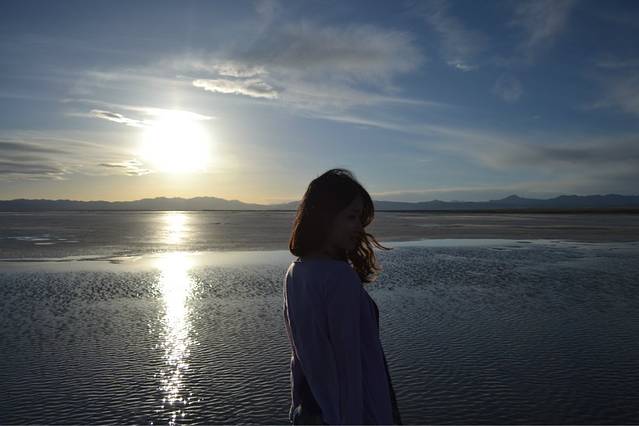 因为青海湖日落差不多8、9点钟,我们在青海湖南山的时候是5点不到,熊师傅就先带我们到黑马河晚上住宿的农家乐把房间确定好(黑马河和后一天祁连的住宿都是让师傅帮我们订的)。其实我这次青海湖的行程最期待的就是接下来的漠河盐场,因为来之前在网上看到别人拍的一组站在盐湖上的照片,最后也造成了我和珺珺的悲剧——本来的天水一线变成了天水一“陷”,我两的鞋直接毁在盐场了!!!我们本来是想去茶卡盐湖,但熊师傅告诉我们茶卡和漠河就是连在一起挨着的,风景都是一样的,茶卡适合看日出,漠河盐湖看日落,最后就载我们到了不花钱的漠河盐场。