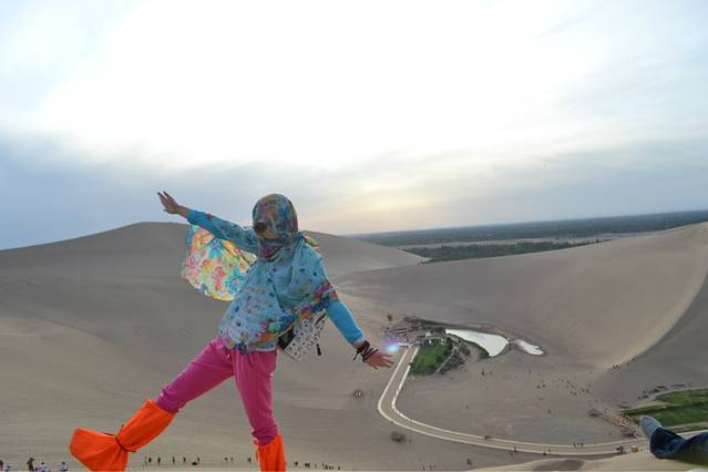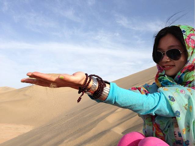 我在沙漠上就这样脸也全部被晒过敏发红了,而且这个8点了哦,大家去鸣沙山一定要做好防护措施啊!!!