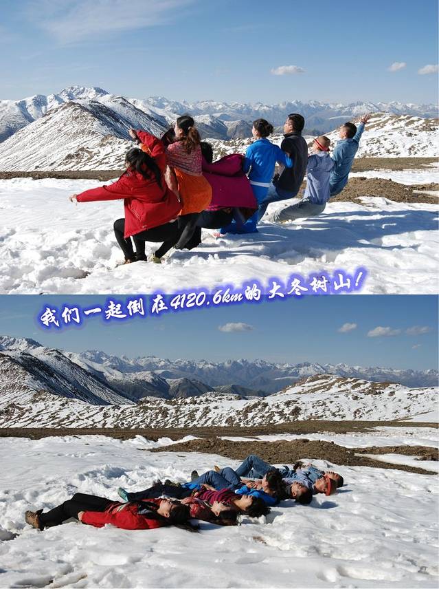 另一车的几个男孩提议一起倒在雪地上,大家真的是为了拍照不要命啊
