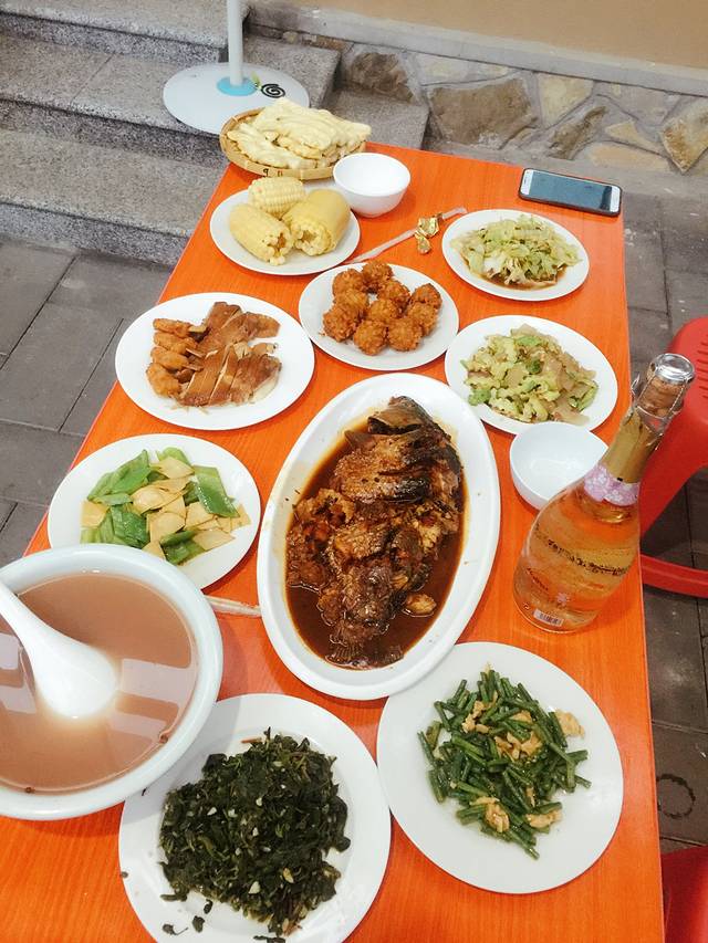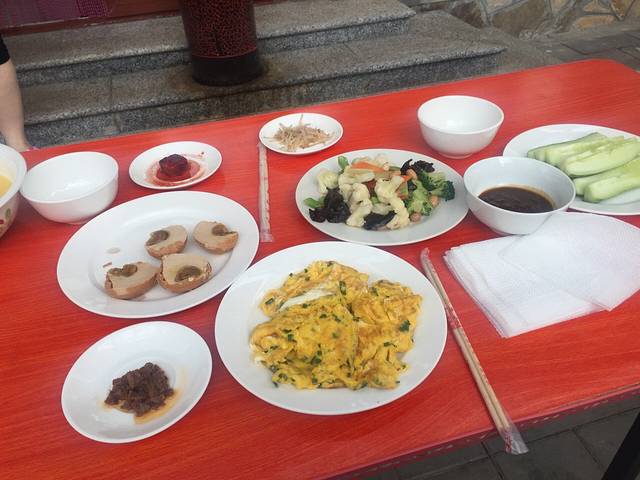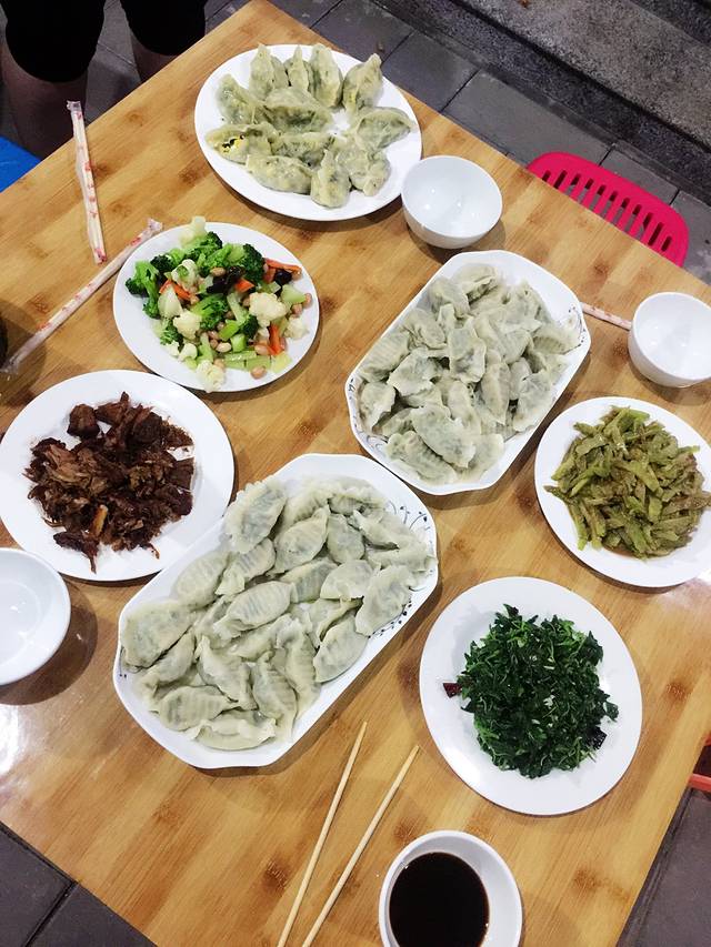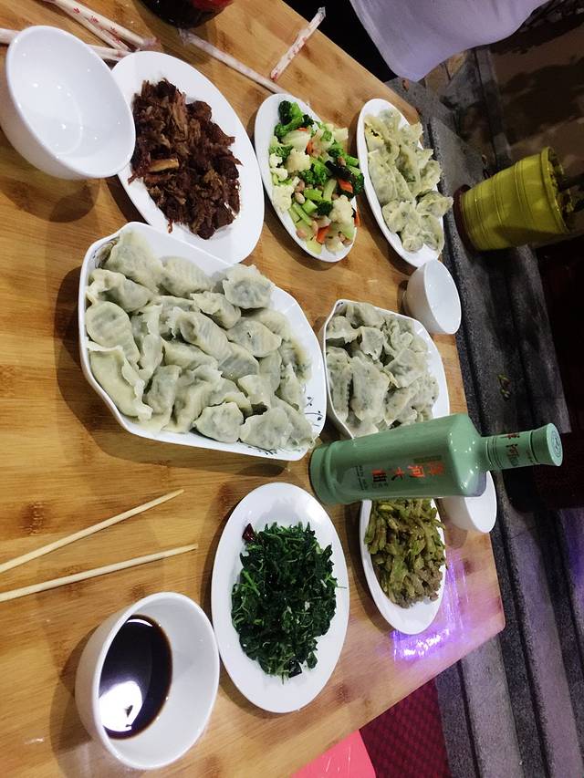 农家院的第一餐 很丰盛 朋友是回民'农家院还特意个做了素的煎饺很贴心