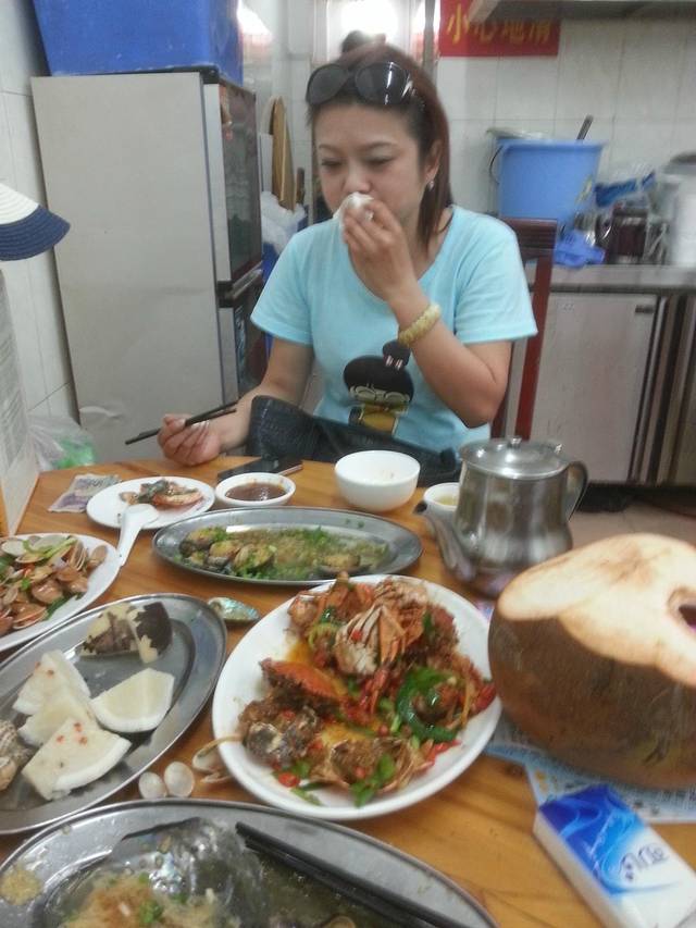 到市场后,根据晚上推荐,去市场周围找一家加工店加工海鲜(林姐海鲜和四川胖哥这两家可以去试试,比较出名,其他的我们没有去试过),在市场买海鲜去加工目前比较流行,很多游客都喜欢这样吃海鲜,价格不贵,而且味道很资格,也不怕被宰,如果你喜欢用大众点评在网上订的话,可能还会优惠些,也可能得到小赠品。