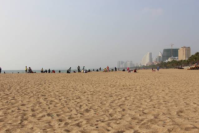三亚湾路海边的感觉是“人多”而且水质也比较一般,本地人和游客比较多,沙滩上满满的人。