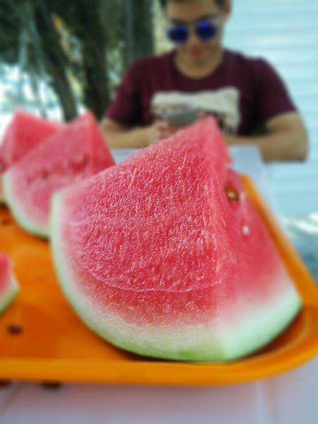 兰州的当地的西瓜很好吃,个头越小的那种越沙甜,而且皮超薄。从黄河母亲雕像那里沿着河边一路走,可以进过一个免费的水车博物馆,坐羊皮筏子,再继续走到大铁桥,过了天桥再一直走就可以到正宁路小吃街了。很热闹,东西还不贵,五块十块的,两个人从街头吃吃喝喝到街尾,吃的饱饱的回酒店
