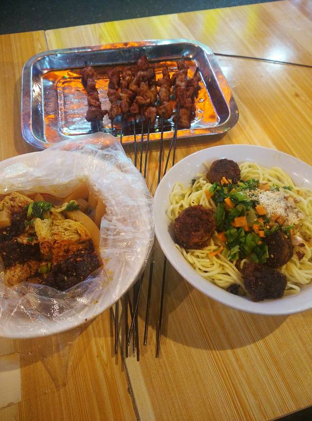 西宁吃的羊肉串、酿皮,羊肉串是不放孜然的口感和在家吃的不一样