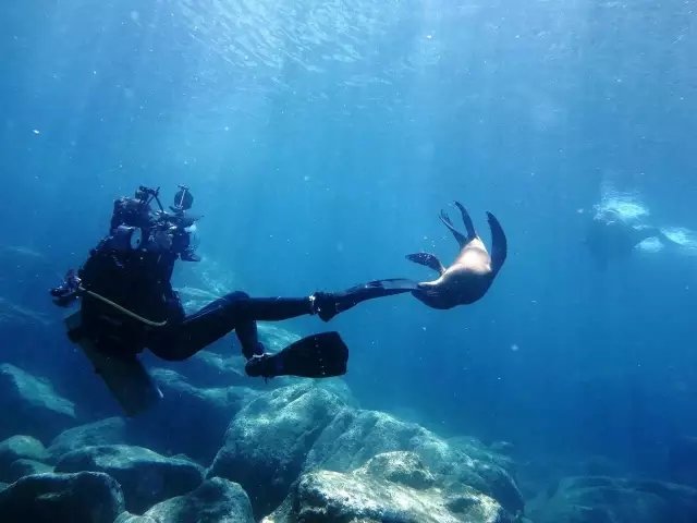 小海狮可爱,母海狮冷漠但是公海狮为了保护家人看心情会有攻击性。如果公海狮觉得生气,它会先过来对你吐泡泡警告你,如果你再不走,它会过来咬你的面镜,这时候要赶快离开它的领地,如果再不走,它就会咬你的头了~