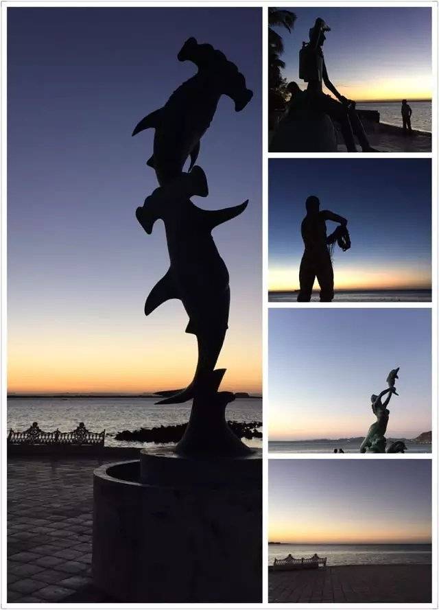 沿路有很多精彩的雕塑,各种海洋生物,海豚、魔鬼鱼、垂头鲨数不胜数,对于潜水员来说,多多少少都会有自己的心头好,小伙伴们不惜开车去沿路去找自己喜爱的海洋生物合影,也真的是很拼!