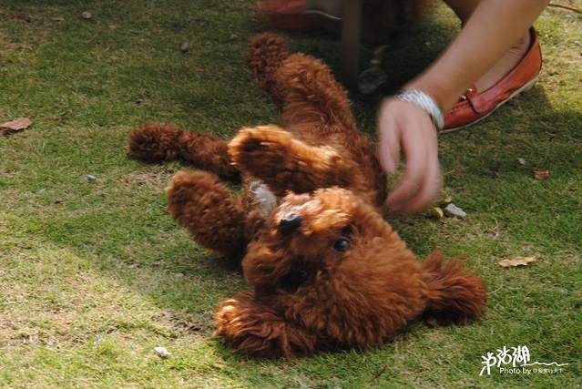 这是草莓第一次出远门,兴奋的在邛海公园的草地上打滚。