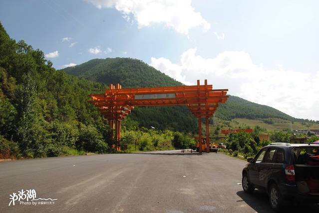 下午四点左右,在拐个一处弯道后豁然见到泸沽湖景区大门,心情一下由刚才的振动模式转换过来,终于到了。
