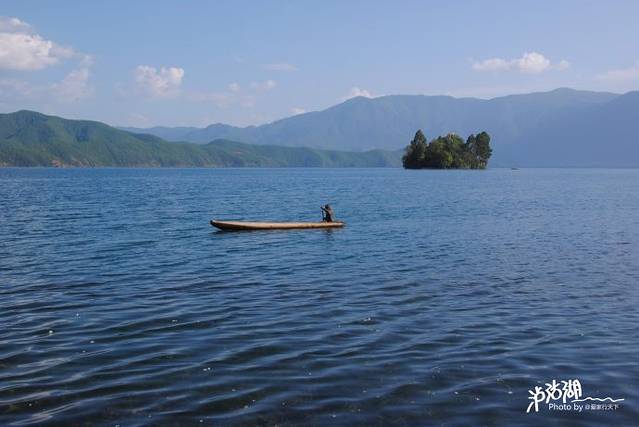 泸沽湖位于四川凉山盐源县和云南宁蒗彝族自治县接壤的崇山峻岭之中,海拔2685米,平均水深40米,是一个形状似马蹄的高原淡水湖,湖中有六岛,林木葱郁,野鸭成群。湖的周围,青山缠绕,树木参天,山茶花、杜鹃花、喇叭花和许多叫不着名的山花,五彩缤纷。这是我国西南高原上的一颗诱人的明珠,摩梭人称它为“谢纳米”,意思是“母湖”,母亲的湖。她像一个古朴、宁静的睡美人,躺在青山环绕的怀抱之中,又像造物主藏在这里的一块硕大的蓝宝石,一面光彩照人的天镜。